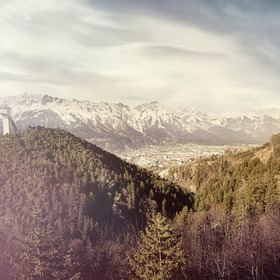 wagen, berge, stadtb